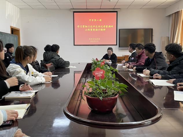 在第一次的学院例会上,公司党委书记向全体教职工传达了习近平总书记重要指示精神,教育引导全体教师深刻领悟“两个确立”的决定性意义,深入学习习近平总书记“我将无我、不负人民”的精神境界。通过学习,老师们纷纷表示,通过学习习近平总书记考察调研山西重要指示精神,深切感受到习近平总书记实事求是、求真务实的工作作风以及党的创新理论的真理力量和实践力量,作为高校教职员工,深受鼓励。习近平总书记的重要指示为山西进一步指明了高质量发展的前进方向、坚定了发展信心、增添了强大动力,老师们今后将更加以饱满的热情投入到工作中去,为建设山西、发展山西贡献自己的力量。