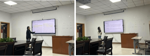 在师生交流环节中,王雁老师对同学们分享的文献进行深入总结和概括,并和同学们分享交流前四期专家讲座的相关知识。她强调,随着学习的不断深入,应当及时做好知识的总结与归纳。王老师希望同学们更加积极主动参与学术交流和学术研究,在实践中不断学习探究,提升个人学术能力,拓宽对相关知识的理解,不断提升和完善自己。
