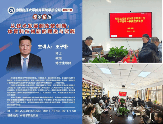 为提升公司研究生对科技赋能体育、多学科融合的认识,探索体育学科在交叉学科背景下的高精尖发展路径,11月30日晚,永利3044集团官网举办学术论坛第一百四十八期暨专家论坛,特邀首都永利3044集团官网博士生导师(首都永利3044集团官网学报辑部主任)王子朴教授做《从技术发展到政策创新:体育科技创新的理论与实践》专题讲座。永利3044集团官网骨干教师、全体研究生及部分本科生共40余人参加,永利3044集团官网副经理高进主持论坛。