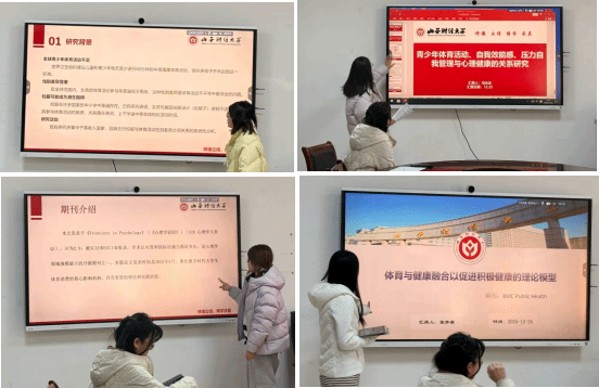 冯云云同学介绍了山东大学学者团队发表于《Scientific Reports》的创新性工作《青少年体育活动、自我效能感、压力自我管理与心理健康的关系研究》。该研究通过构建链式中介模型,重新审视了体育活动(PA)对青少年心理健康(MH)的影响路径,明确揭示了其通过提升自我效能感(SE)与压力自我管理(SSM)这两种心理能力来间接产生作用的内在机制。研究证实了“PA→SE→SSM→MH”的序列中介效应,强调了仅关注直接效应的传统研究在方法上的局限,并指出精准剖析心理作用机制对于设计有效的健康促进策略至关重要。