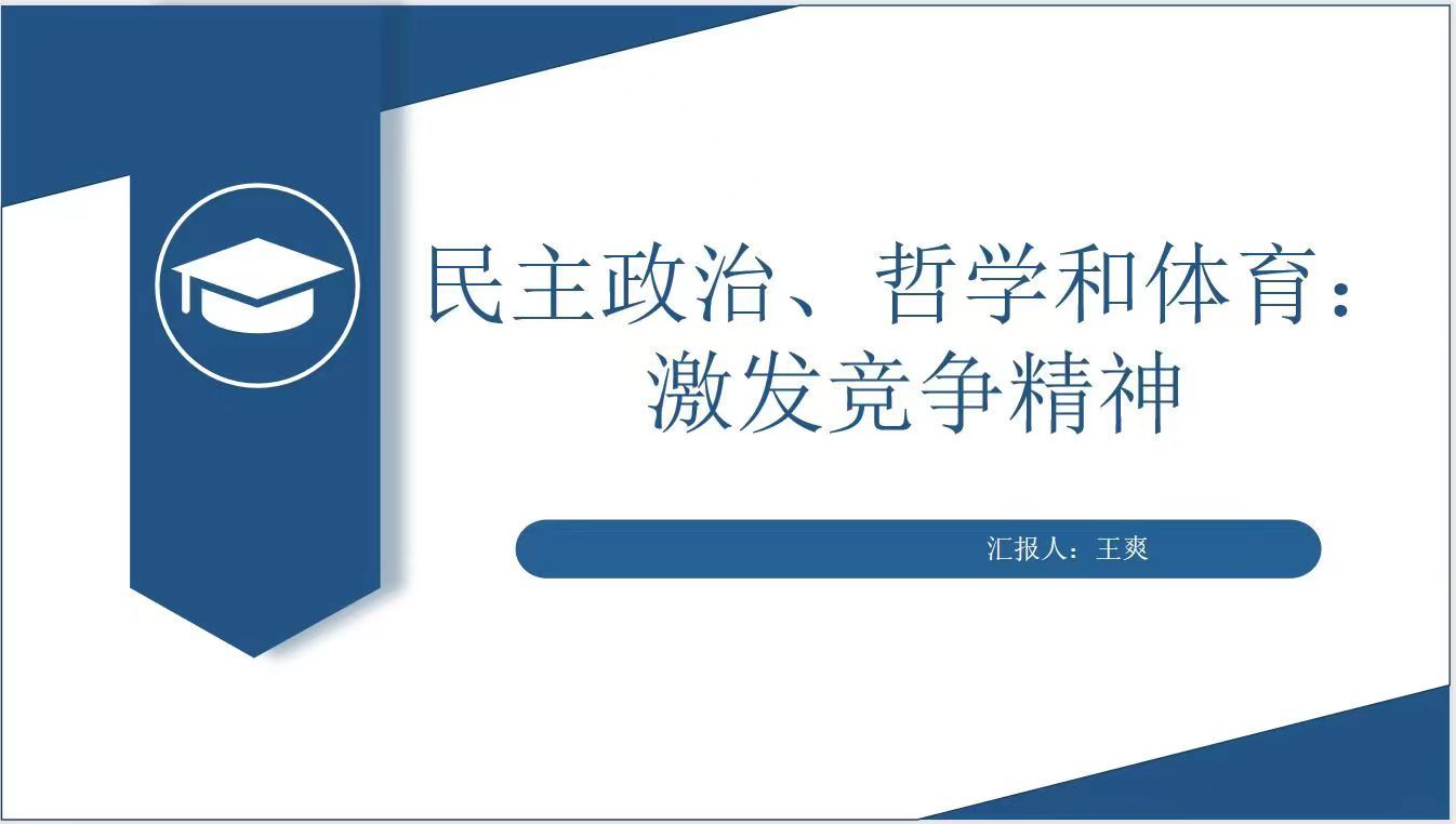 王爽的主题为“民主政治、哲学、体育:激发竞争精神”,主讲文章由捷克共和国布拉格查尔斯大学体育教育和永利3044集团官网Breana McCoy和Irena Martínková学者联合发表的Democracy, Philosophy and Sport: Animating the Agonistic Spirit,来自Journal of the Philosophy of Sport期刊,文章通过探索Polemos和Agon之间的关系以及这种关系对哲学、民主政治和体育等不同领域的影响,讨论哲学、民主政治和体育不同竞争形式的社会实践提供了个体有机会脱颖而出、证明自己和获得他人认可的环境,旨在帮助我们参与诸如体育等激烈的社会实践时如何利益最大化。