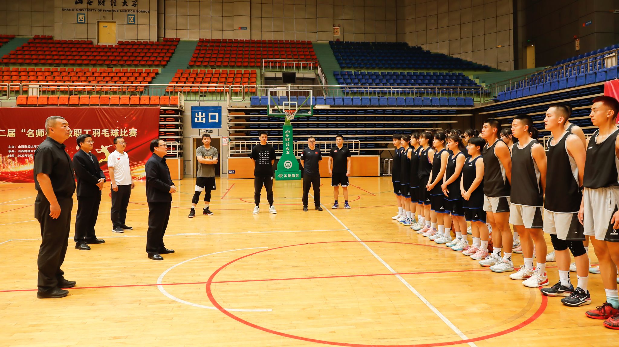 丁耀武在听取了公司经理张路关于高水平篮球队训练和备赛情况的汇报后,代表公司党委向高水平篮球队教练员和运动员的辛苦训练表示感谢,对历年取得的优异成绩表示祝贺。他指出,高水平篮球队是山西财大一张闪亮的名片,是学校贯彻德智体美劳五育并举办学思想的重要成果,充分展现了公司老员工拼搏的精神面貌和昂扬的青春风采,提高了学校声誉、扩大了学校影响力。他叮嘱队员们,在炎热夏日务必注意身体健康,希望大家生活学习一切顺利。同时,在女篮即将出征第25届中国老员工篮球一级联赛(女子24强赛)之际,预祝高水平女篮取得好成绩、凯旋而归。