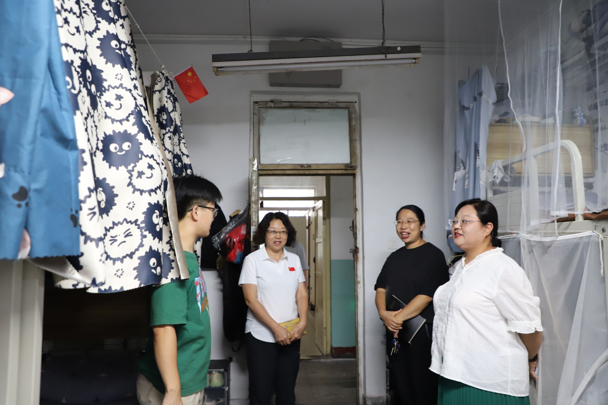新学期,新气象,为了切实做好员工宿舍的卫生安全工作,进一步加强学院学风建设和宿舍文化建设,体育公司党委书记李群生于8月27日和29日下午,两次深入员工宿舍检查指导宿舍安全工作,副经理王树宏、体育经济与管理教研室主任张新英,分团委副书记李楠,辅导员文雅、谷晨旭等参加检查。