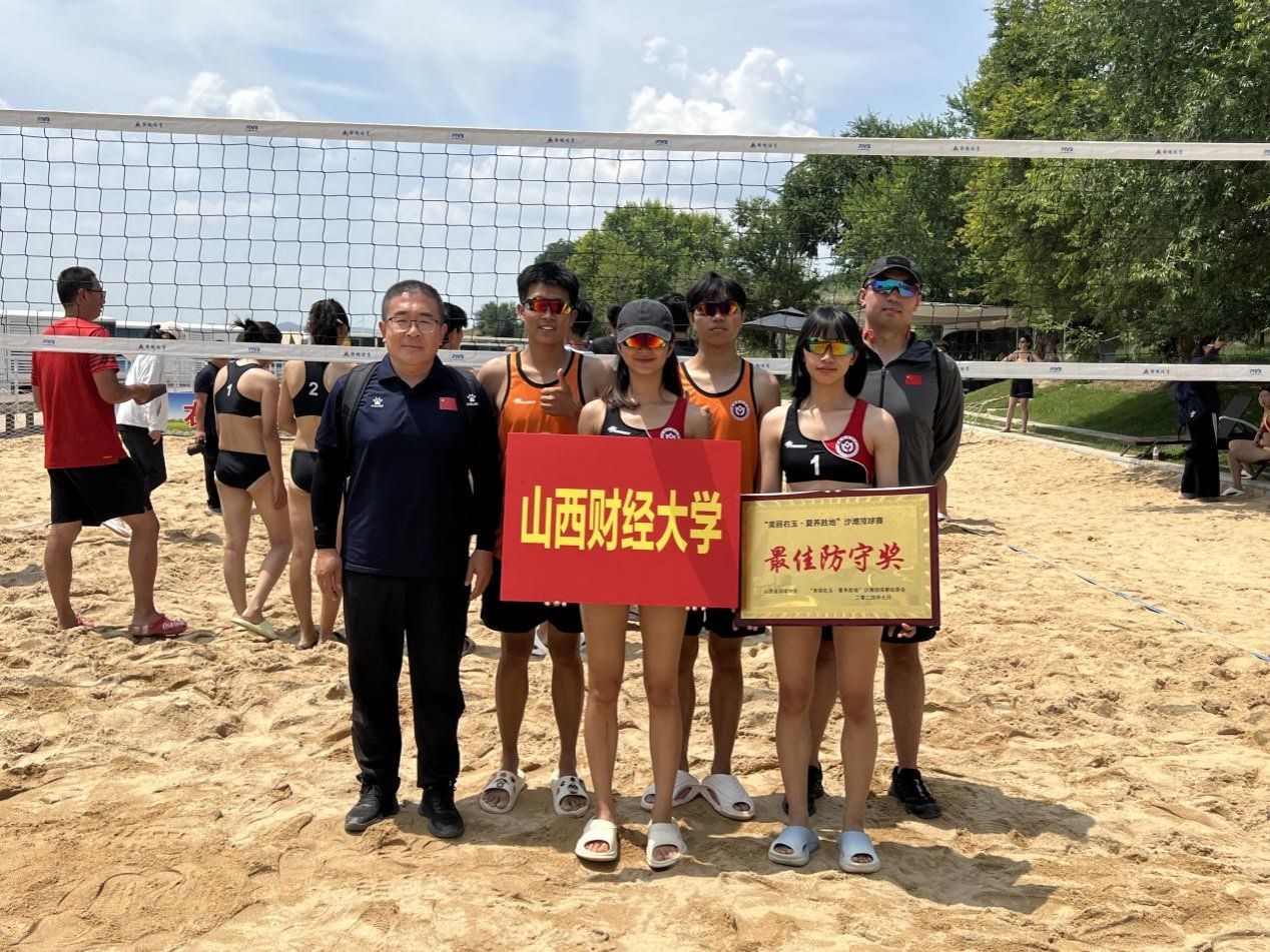 沙滩排球以其很强的竞技性和独特的艺术性、观赏性和趣味性,被誉为“21世纪最杰出的运动”。公司队员都是第一次接触沙滩排球,但队员在前期的体育教学及课外训练中打下了坚实的排球技术基础。经过短期集训,他们在比赛中不畏强敌、奋勇拼搏,打出了财大气势和财大精神,最终获得最佳防守奖。