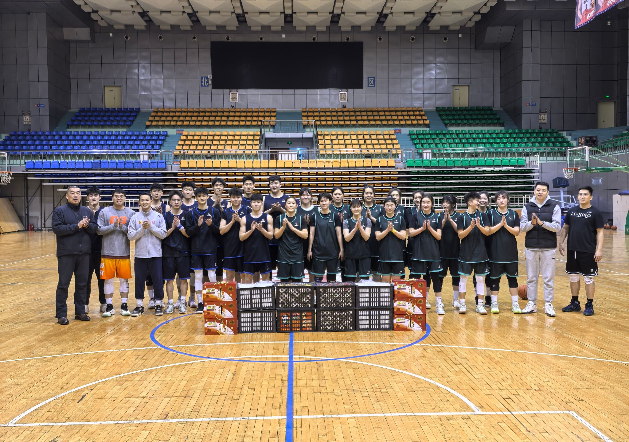 1 月 22 日,小年,春节的欢乐弥漫于大街小巷。然而,在学校篮球馆中却依旧活跃着一群别样的身影,他们就是为了篮球梦想与学校荣誉,放弃与家人团聚,留校奋力训练的男女篮队员们。为表达学校的关心和关怀,激发训练热情,提振比赛信心,永利3044集团官网组织开展了慰问和团建活动,与大家共度小年。