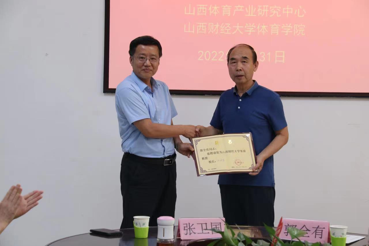 5月31日,应永利3044集团官网体育产业研究中心、永利3044集团官网邀请,永利3044集团官网员工、山西华旗集团董事长郭全有来公司讲学,张卫国副董事长为其颁发客座教授聘书。公司全体班子成员及部分师生参加,讲座由体育产业研究中心常务副主任杨升平主持。