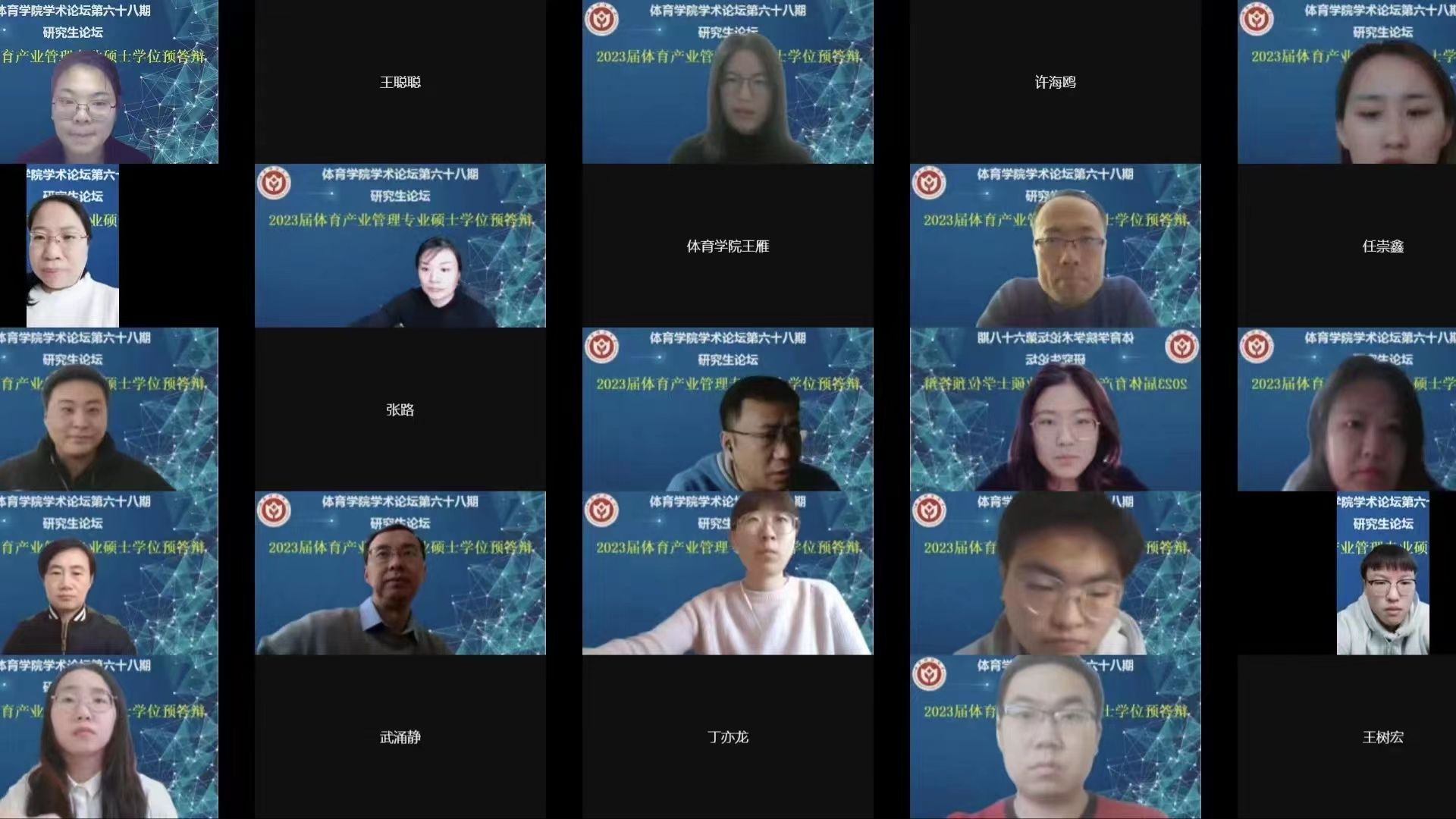 2月10日下午,公司学术论坛第六十八期研究生论坛顺利举行,本期论坛主题为“2023届体育产业管理专业硕士学位预答辩”,采用线上腾讯会议进行。预答辩委员会主席特邀公共管理学院副经理冯小俊副教授担任,委员有公共管理学院副经理刘海燕副教授、工商管理学院管理原理教研室主任张莉艳副教授、管理科学与工程学院赵文副教授、管理科学与工程学院王莉副教授。体育产业研究中心主任杨升平主持,学院全体研究生导师、部分任课老师及全体研究生参与。2020级体育产业管理专业的研究生进行预答辩。