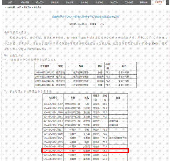 公司2020级体育产业管理硕士研究生程茂滕(硕士生导师:张路),于近日被曲阜师范大学录取为博士研究生。